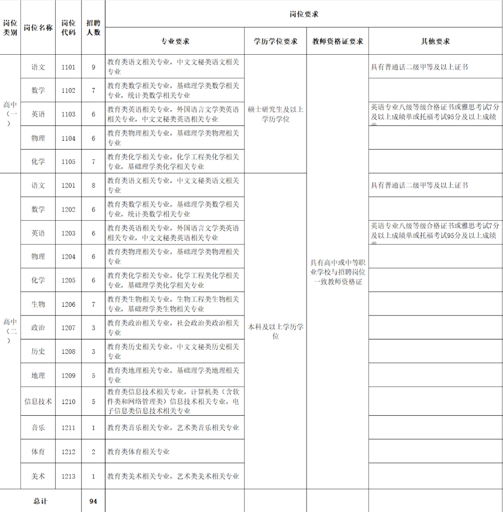 根据《省教育厅省人力资源和社会保障厅关于进一步做好全省中小学校新进教师公开招聘工作的意见》(苏教规〔2016〕1号)、《江苏省事业单位公开招聘人员办法》(苏办发〔2020〕9号)文件精神,结合我市教育事业发展需要,江阴市教育系统面向社会公开招聘全额拨款事业单位编制教师94名(岗位明细详见附件1、附件2)。现将有关事项公告如下: