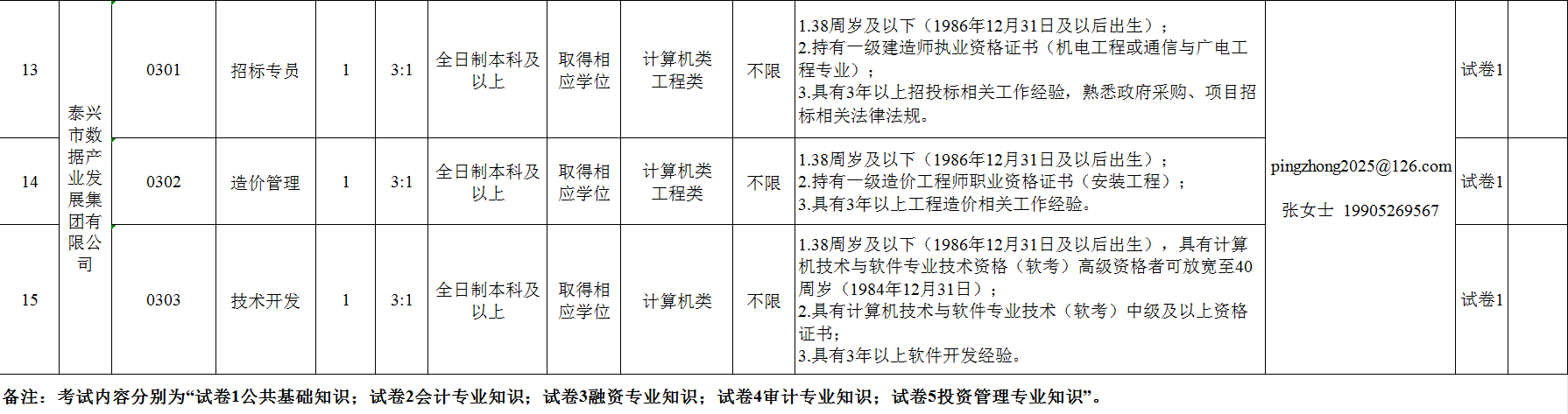 (四)年龄要求,详见《岗位表》;