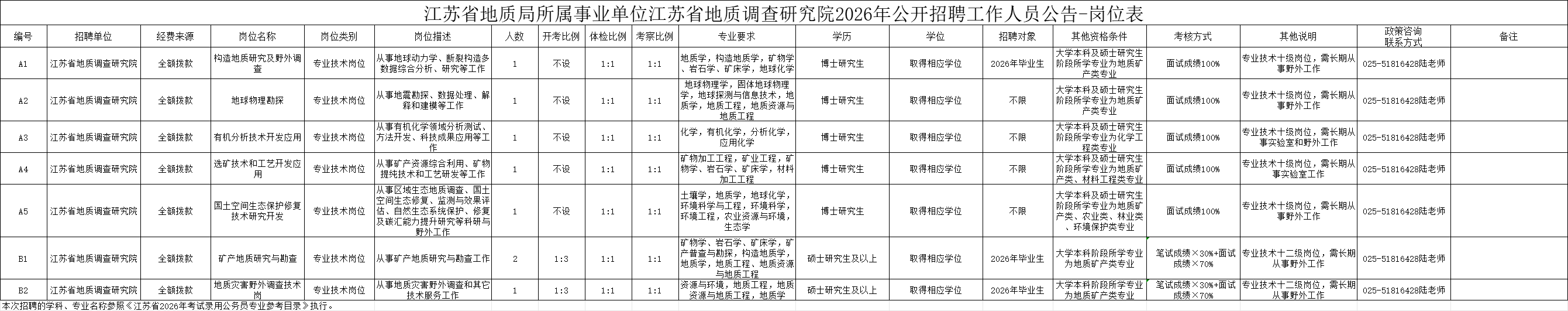 - 8人!事业编!2026年江苏省地质局所属事业单位公开招聘公告