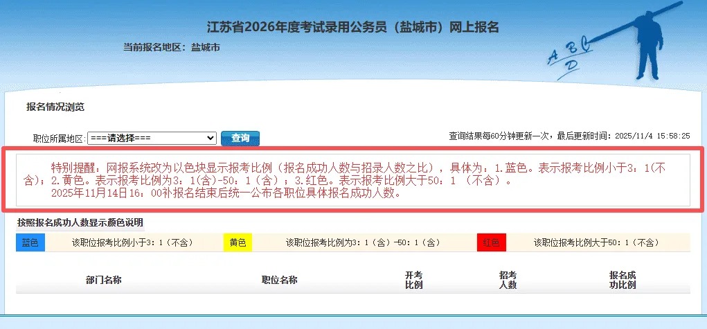 - 【2026江苏省考】报名第三天,盐城427个岗位已“变黄”!