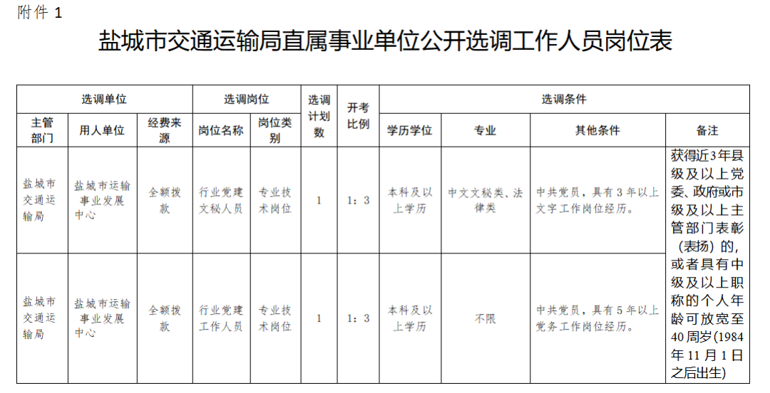 - 2人!事业编选调!2025年盐城市运输事业发展中心公开选调工作人员公告!