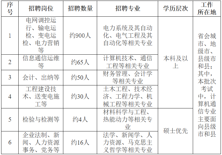 说明:招聘专业均指主修专业,不包含辅修专业及第二学位。上述招聘数量含提前批校园招聘数量,最终招聘数量将根据上级单位核定情况相应调整。