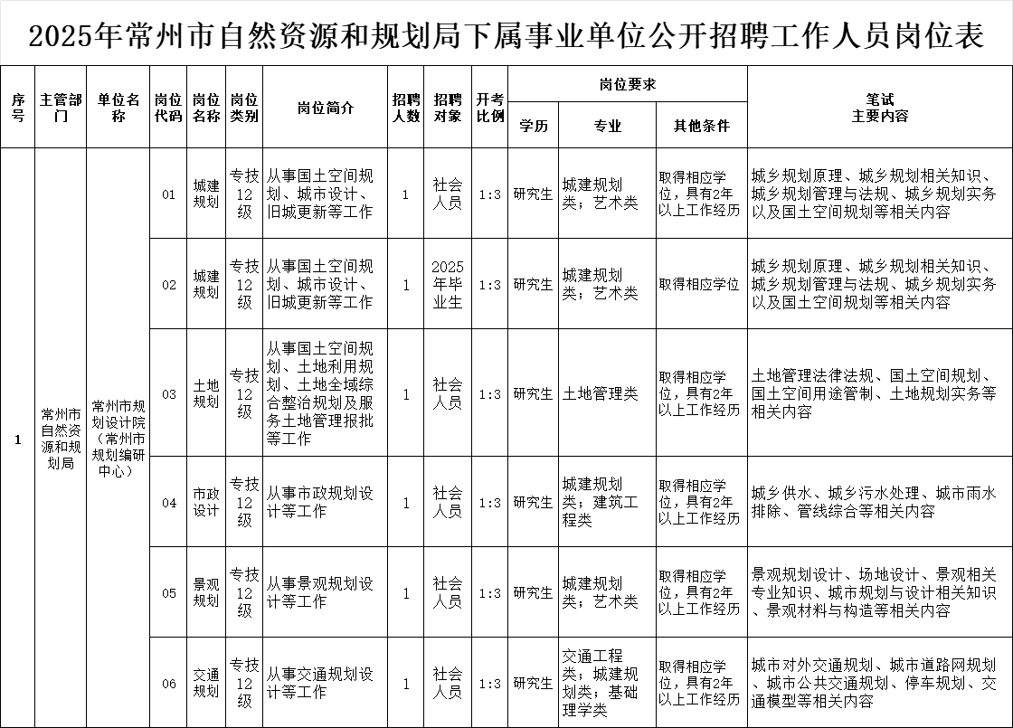 - 6人!事业编!不限户籍! 2025年常州市自然资源和规划局下属事业单位招聘公告