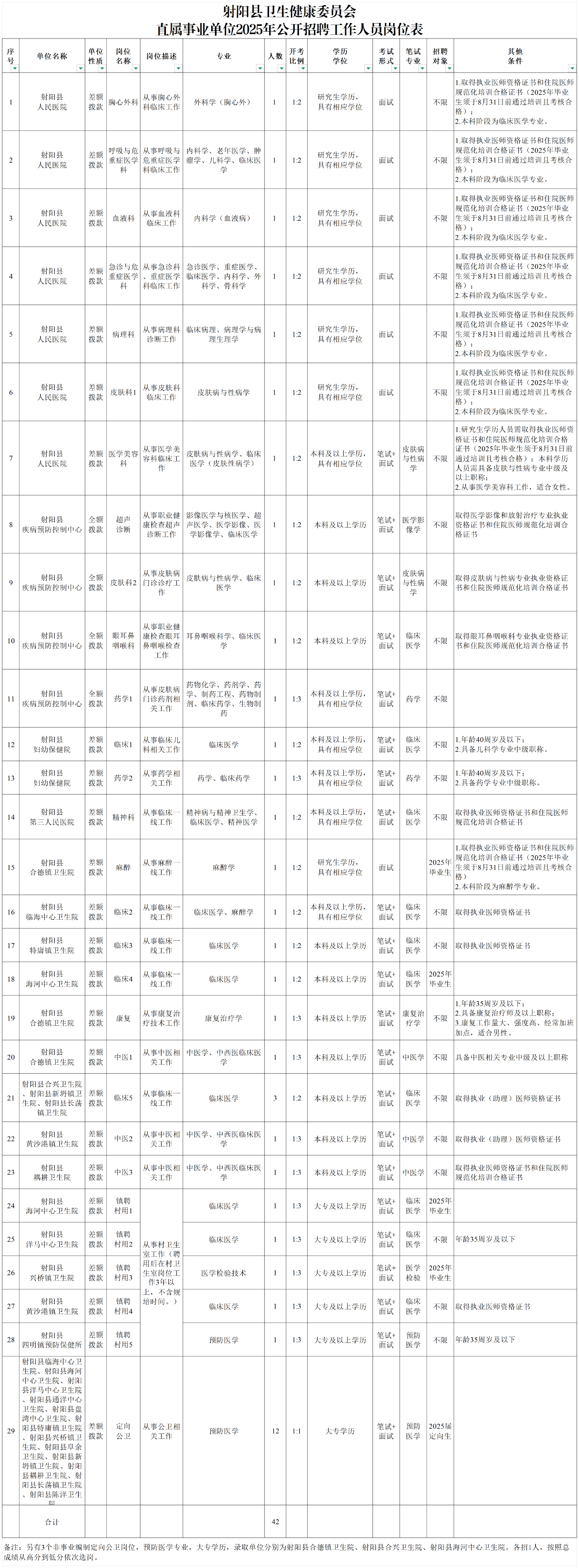 - 42人!医疗编!射阳县卫生健康委员会直属事业单位2025年公开招聘工作人员公告