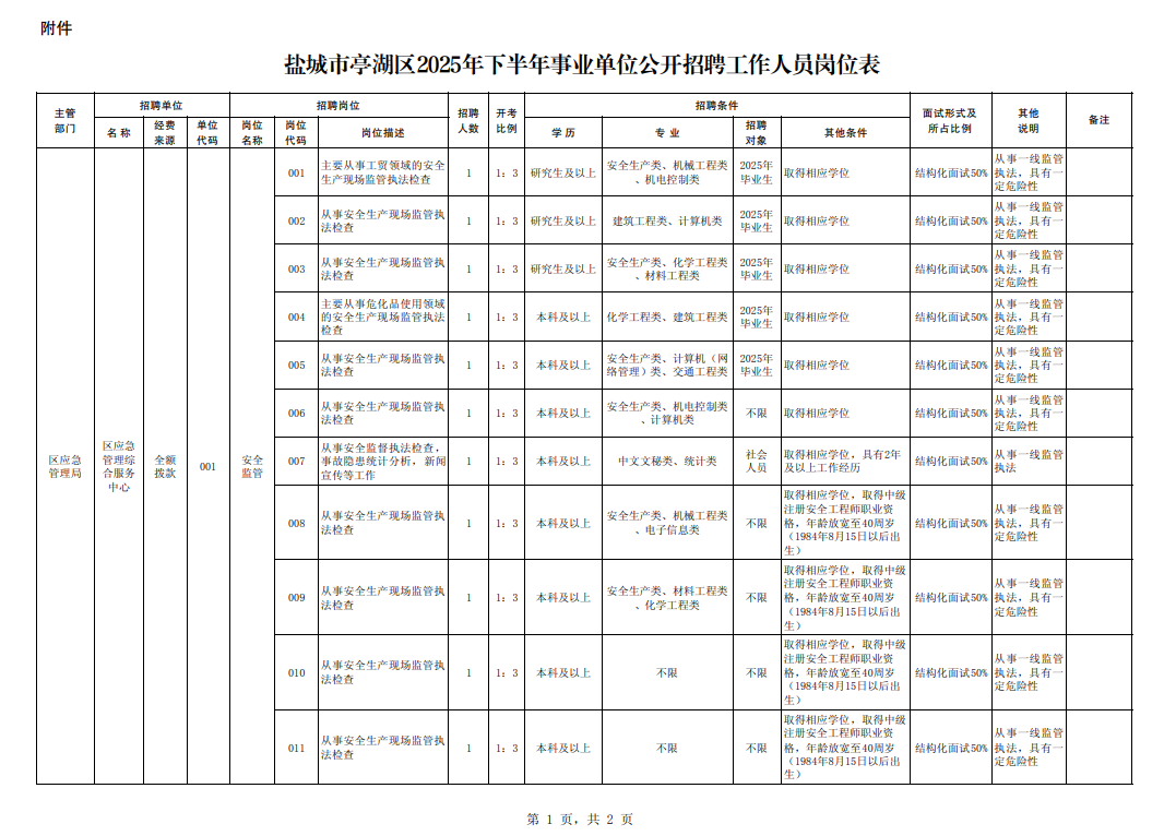 为及时补充事业单位工作人员,优化人员结构,根据《江苏省事业单位公开招聘人员办法》(苏办发〔2020〕9号)精神,盐城市亭湖区2025年下半年事业单位面向社会公开招聘工作人员20名。现公告如下: