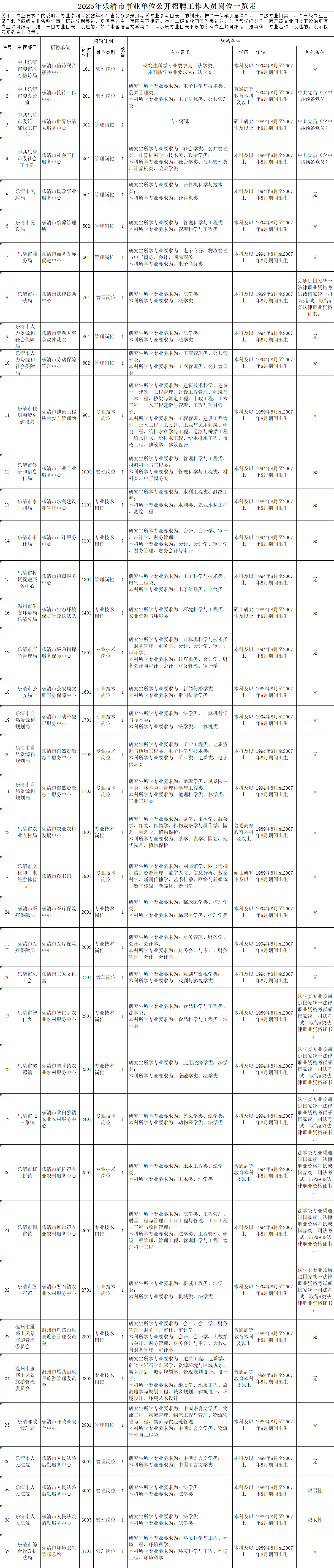 - 43人!9.27笔试!浙江下半年事业单位统考 公告!2025年乐清市事业单位(国有企业)公开招聘工作人员公告