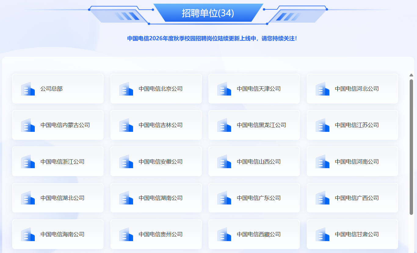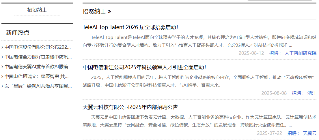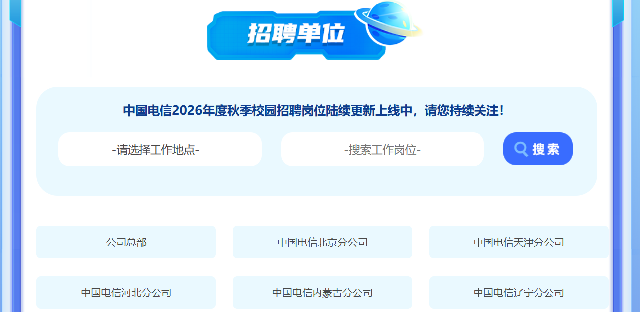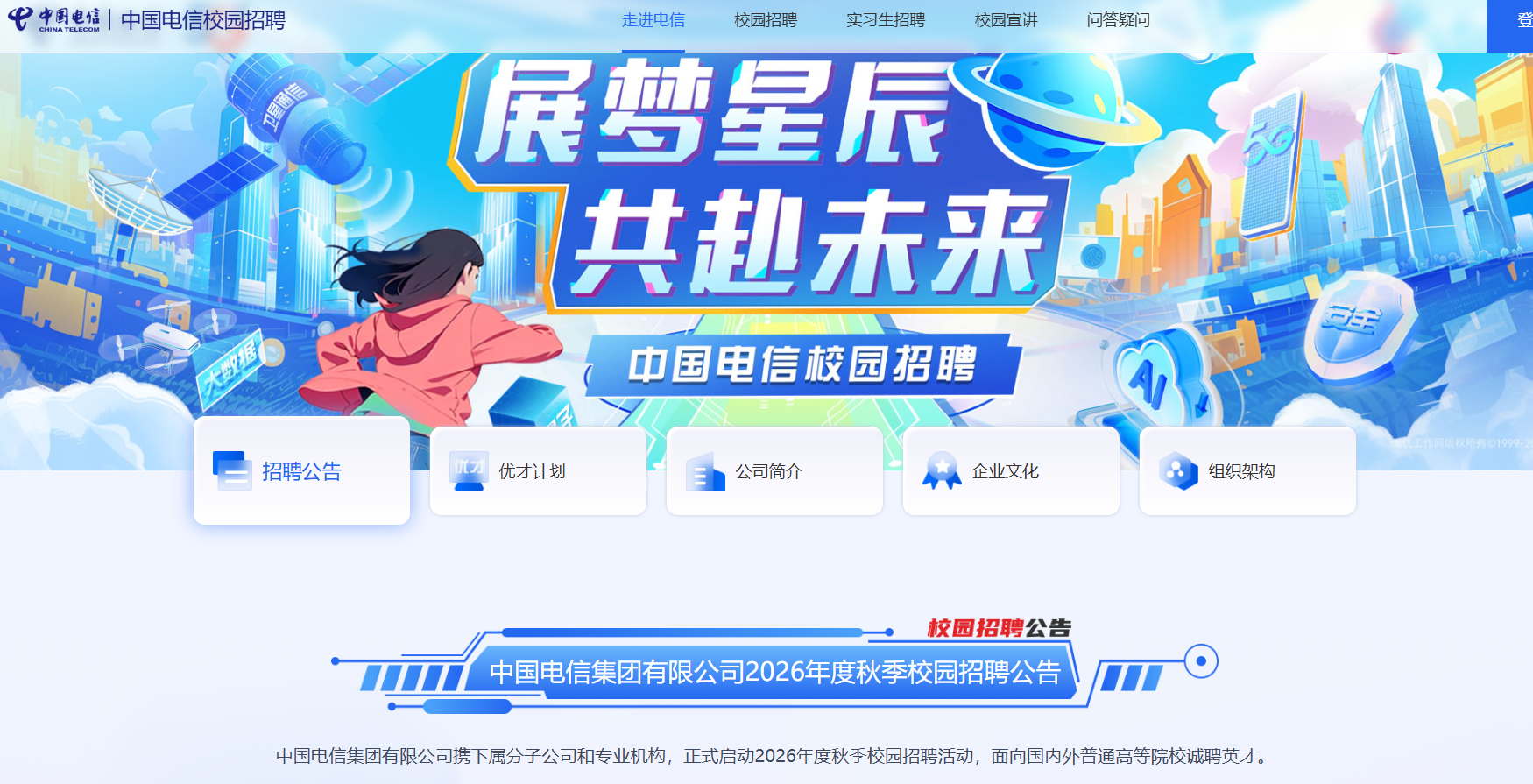 【中国电信集团有限公司网站“招贤纳士”专栏】—— 的校招信息