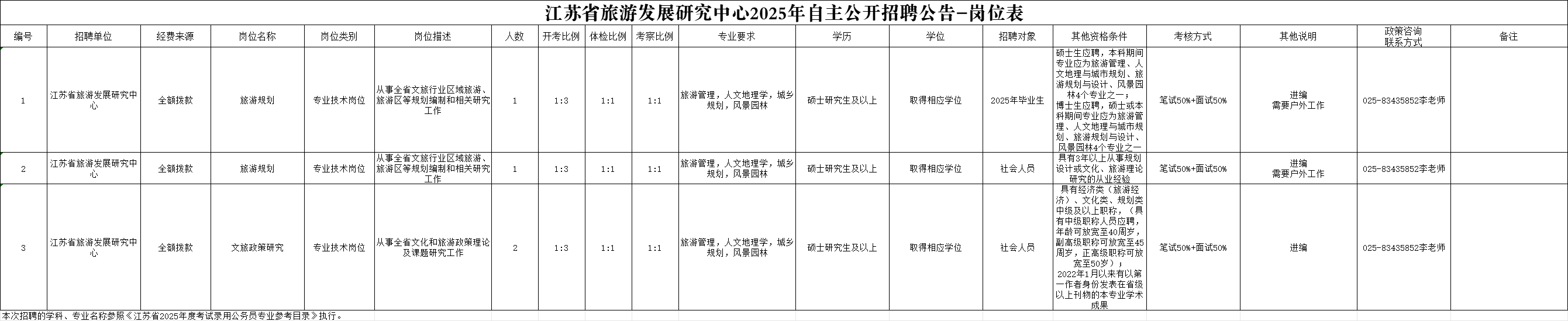 江苏省旅游发展研究中心2025年自主公开招聘公告