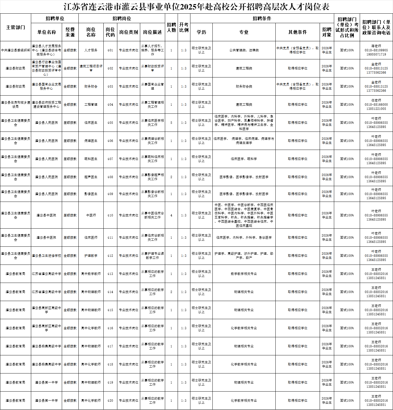 - 29人!事业编!连云港市灌云县事业单位2025年赴高校招聘高层次人才公告