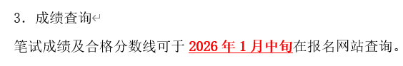 🕛 查询时间:笔试成绩及合格分数线可于2026年1月中旬查询。