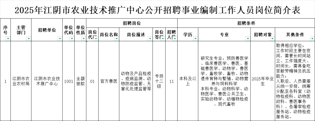 - 11人!事业编!2025年江阴市农业技术推广中心公开招聘工作人员公告
