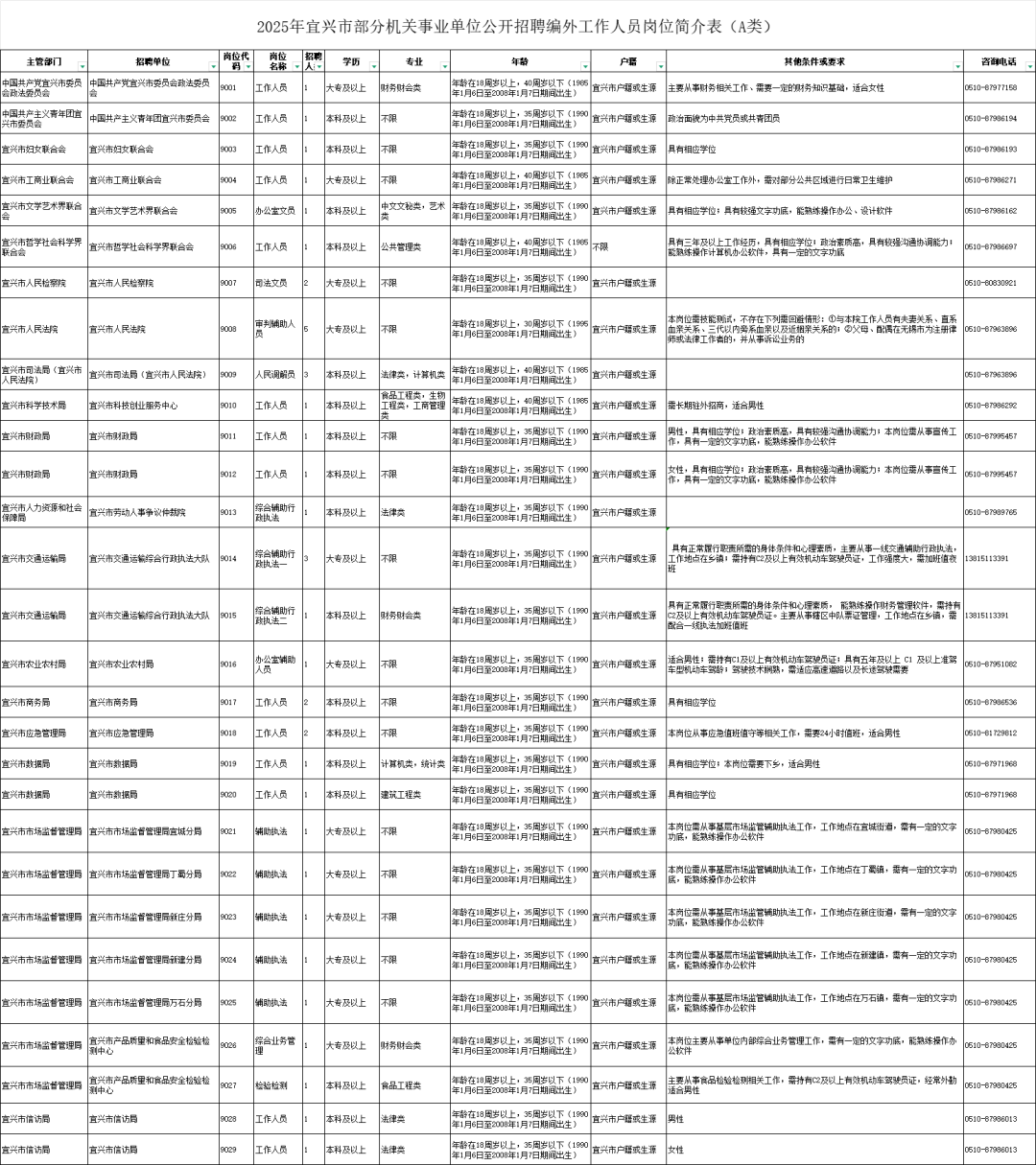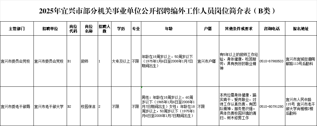 - 43人!2025年宜兴市部分机关事业单位公开招聘编外工作人员公告