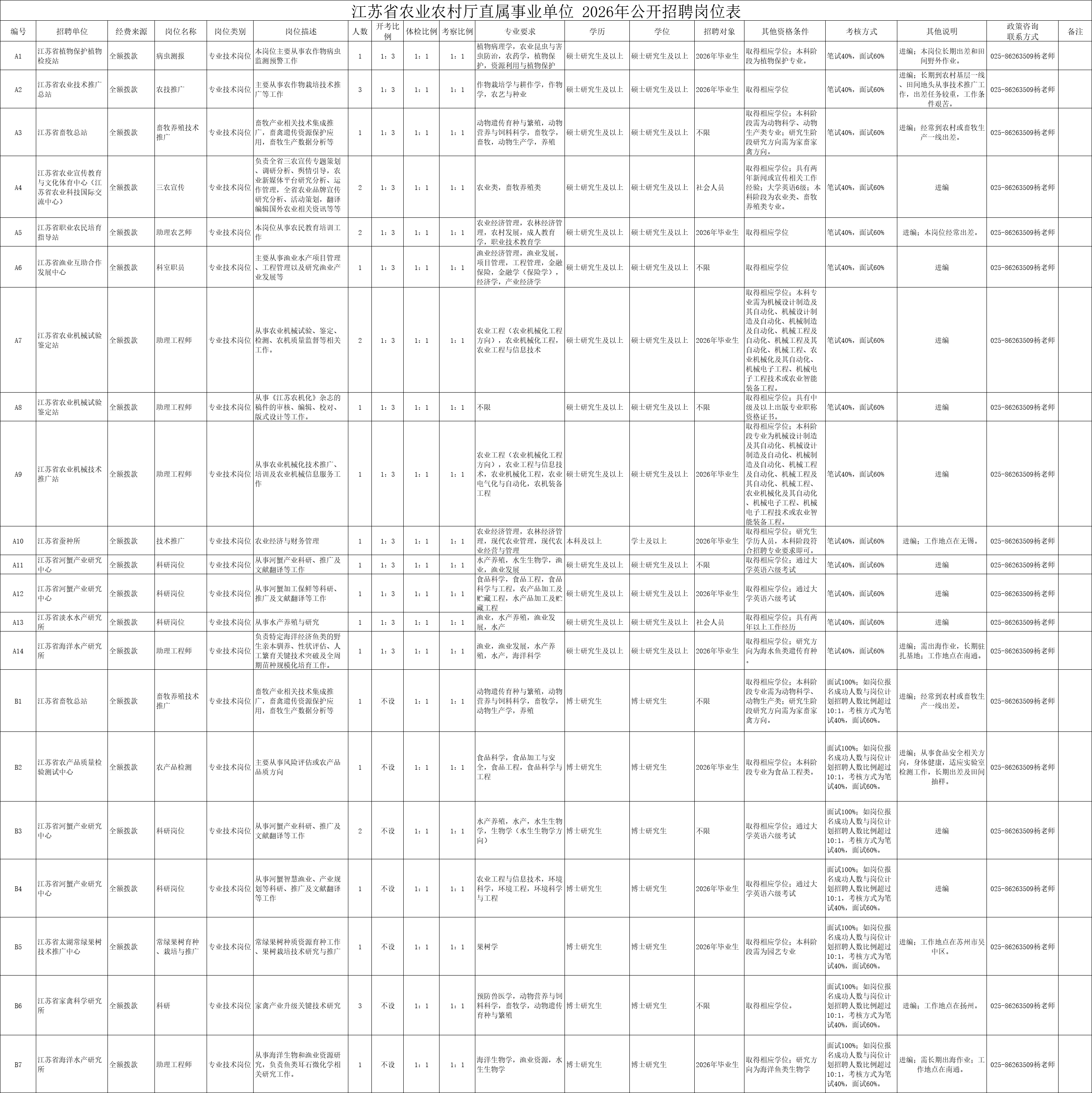 - 29人!事业编!2026年江苏省农业农村厅直属事业单位招聘公告